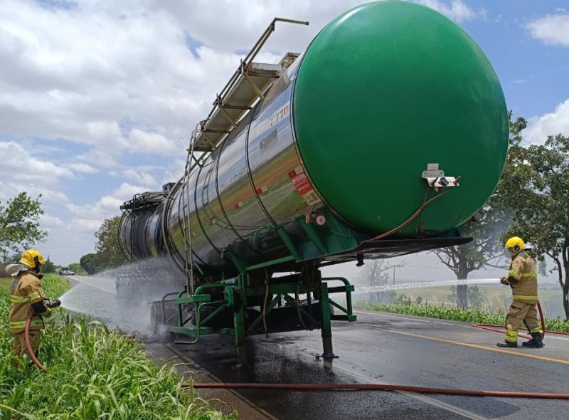 De acordo com informações do Corpo de Bombeiros Militar de Minas Gerais, a rodovia precisou ser interditada em ambos os sentidos. A carreta estava com as rodas centrais em chamas e parte do último tanque parcialmente danificado.