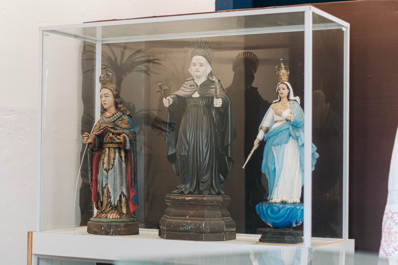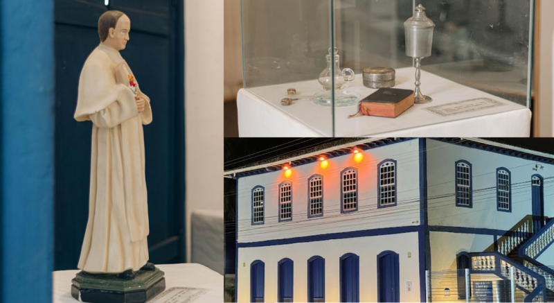 Entre os destaques estão peças de grande valor histórico e artístico, como a imagem de Santa Rita de Cássia em madeira, a imagem de Nossa Senhora do Patrocínio e a escultura em gesso de Padre Eustáquio, que representam a devoção e a memória coletiva da comunidade.