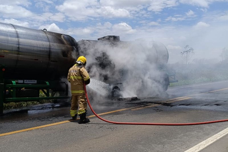 24/11/2025Carreta carregada com leite pega fogo na BR-365, próximo a Patrocínio