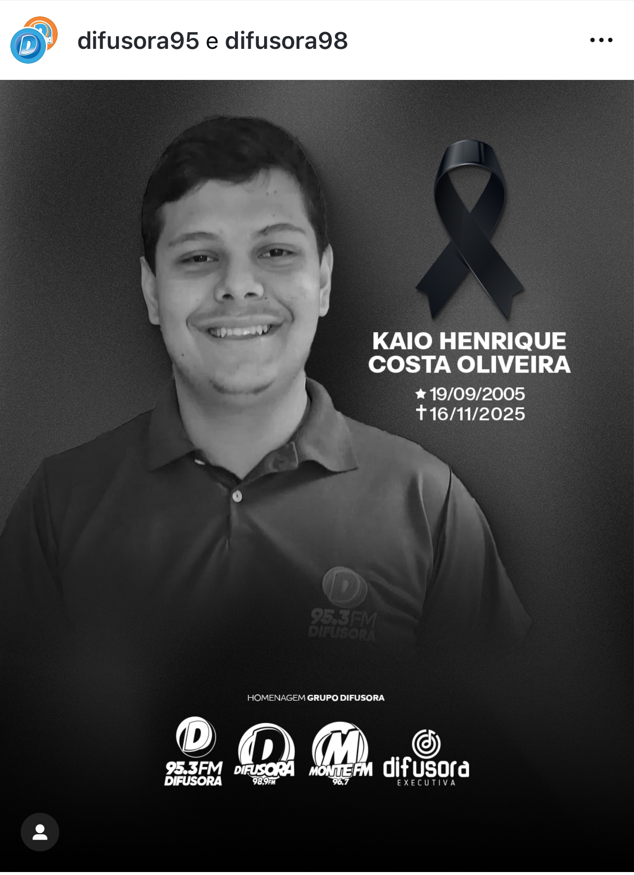 O Grupo Difusora expressou seus sentimentos em uma nota: “Estendemos nossos sentimentos a todos os familiares e amigos das vítimas, desejando força e conforto para enfrentar esta perda irreparável. Que Kaio seja lembrado com carinho por sua alegria, profissionalismo e pela marca que deixou em nossa trajetória. Que todos encontrem amparo e paz neste momento tão difícil.”