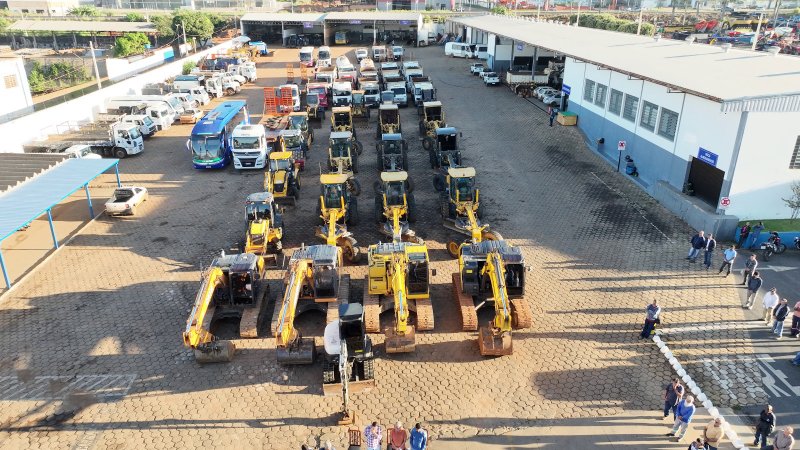 O Governo Municipal apresentou, nesta segunda-feira (13), o novo maquinário da Secretaria de Obras, ampliando a estrutura disponível para os serviços de recuperação e manutenção das estradas rurais. Segundo o Prefeito Gustavo Brasileiro, ao todo, cerca de 40 equipamentos passam a integrar a frota, entre retroescavadeiras, pás carregadeiras e caminhões.