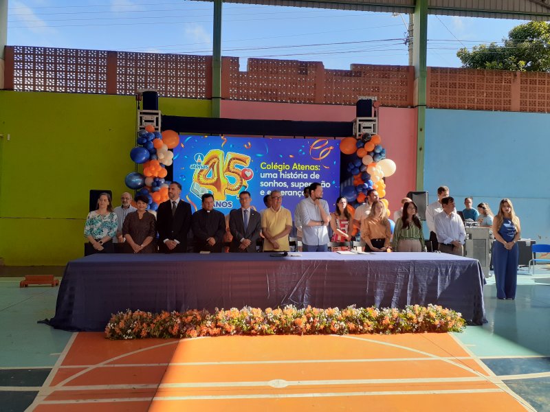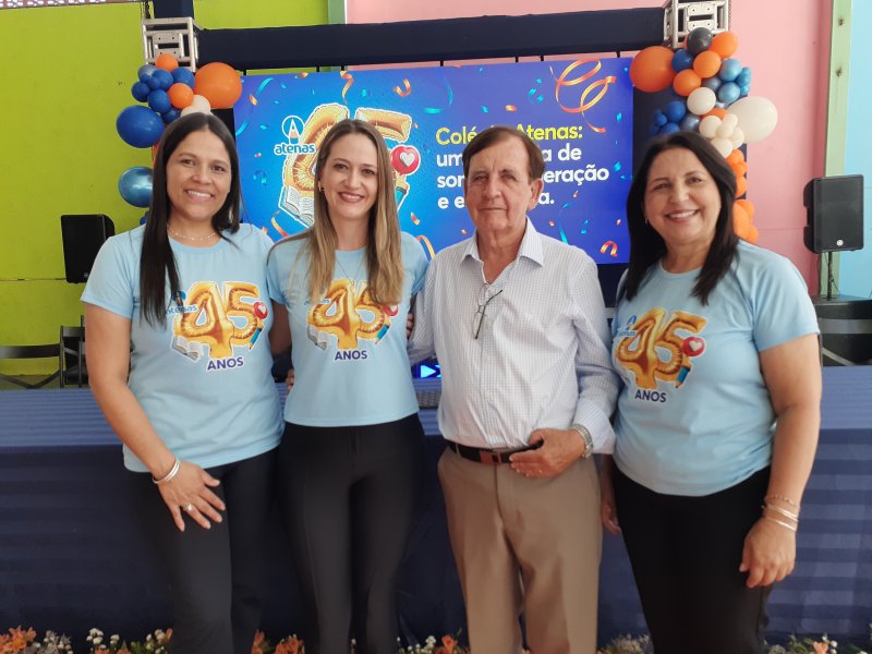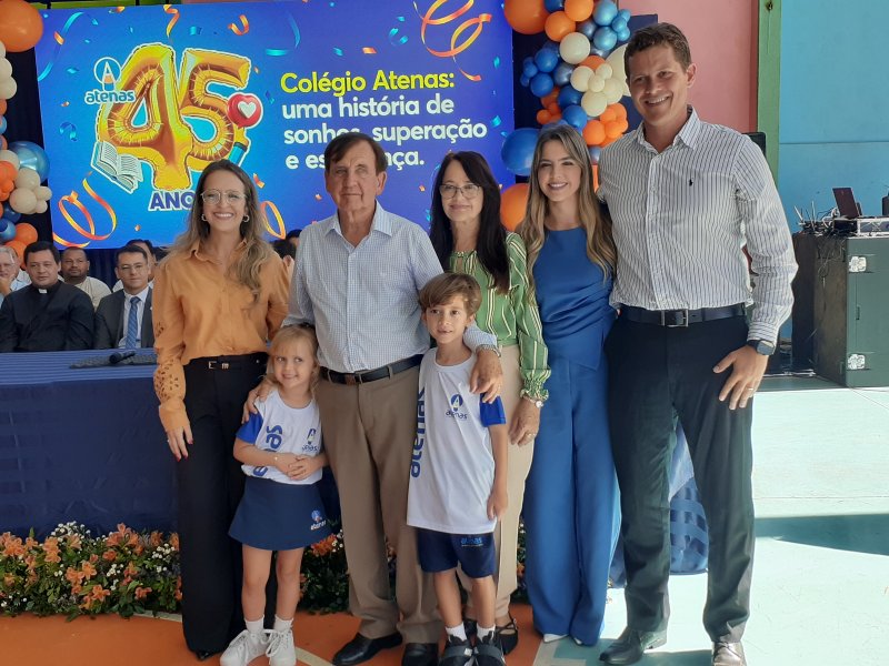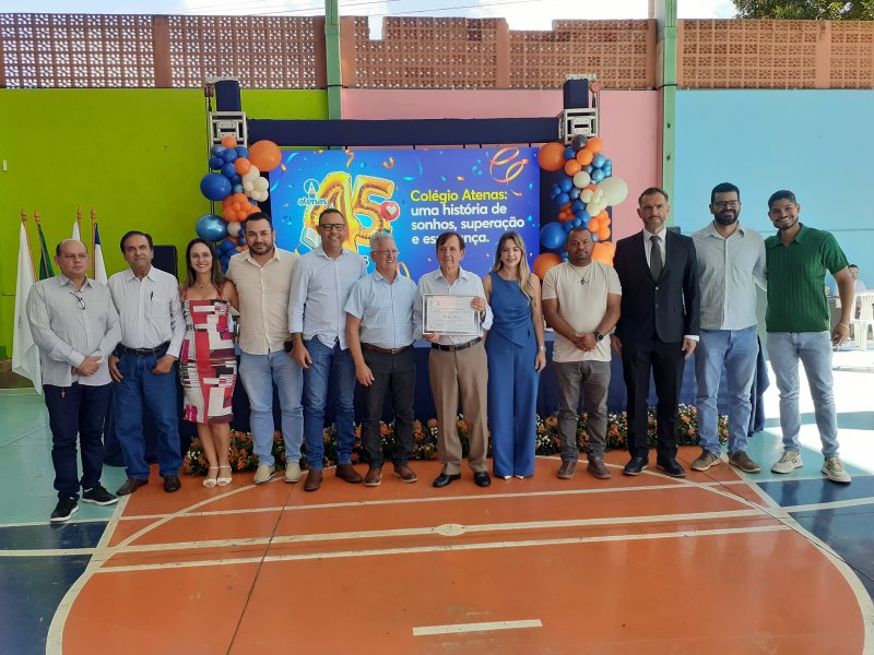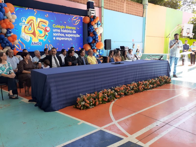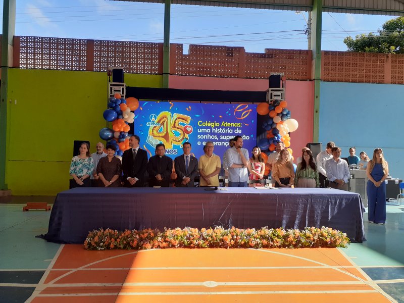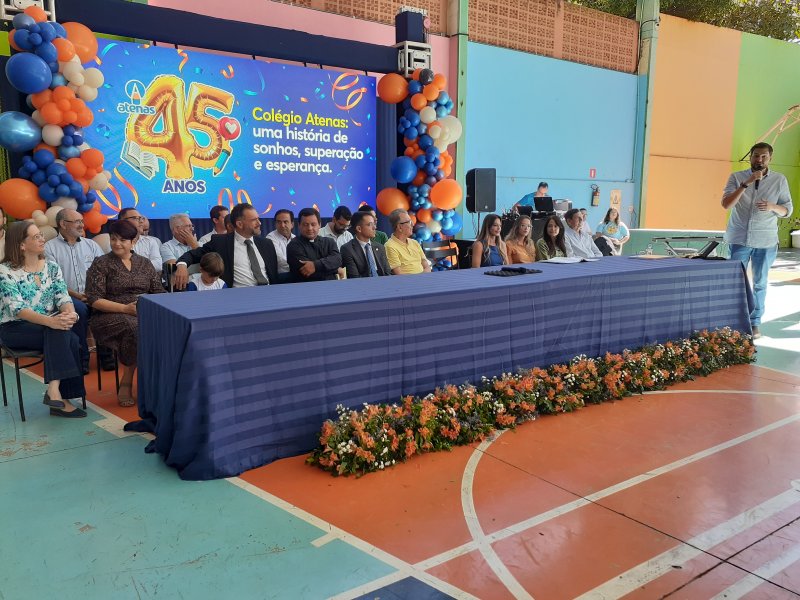 O Colégio Atenas celebrou, no último dia 27, seus 45 anos de fundação com uma solenidade marcada por homenagens, emoção e a presença de autoridades em Patrocínio. A comemoração foi coordenada pelo professor Ivan Batista da Silva, fundador da instituição, ao lado da atual diretora da Escola, sua filha, Clarisse França.