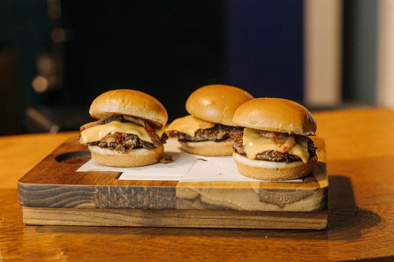 MINI SMASH - 3 mini hambúrgueres com pão de brioche, baconese, cheddar e