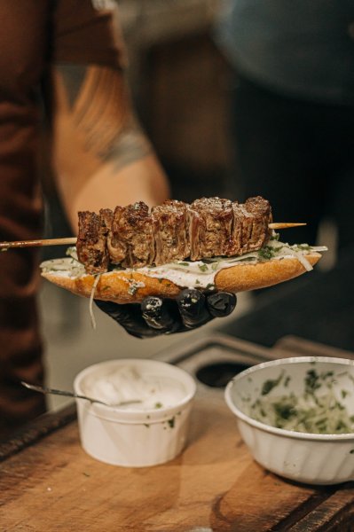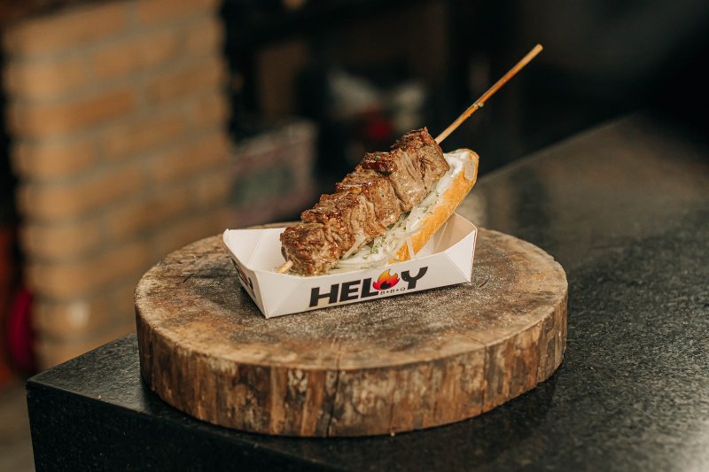 na brasa - Espeto bovino de fraldinha com mix de ervas e creme de queijo