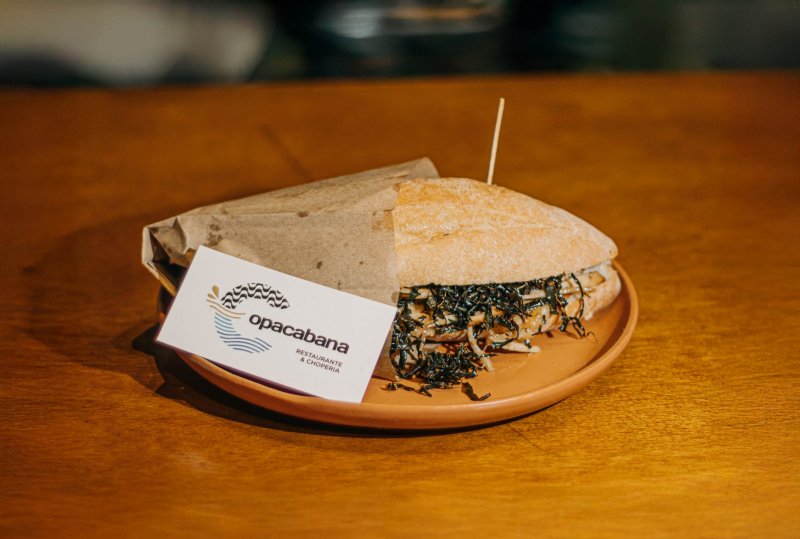 minas com crocante de cebolas servido na meia baguete |