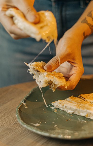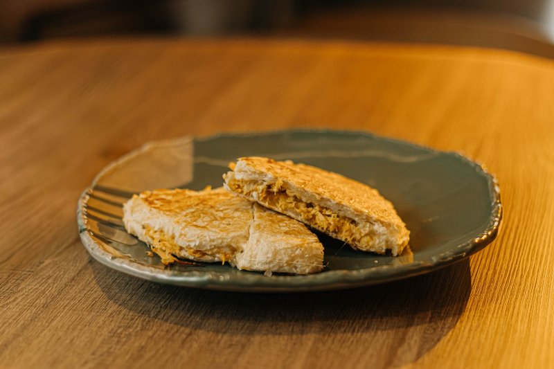 Croissant Mineiro: Sanduíche de croissant prensado com frango no açafrão e queijo minas derretido. Veterariano: