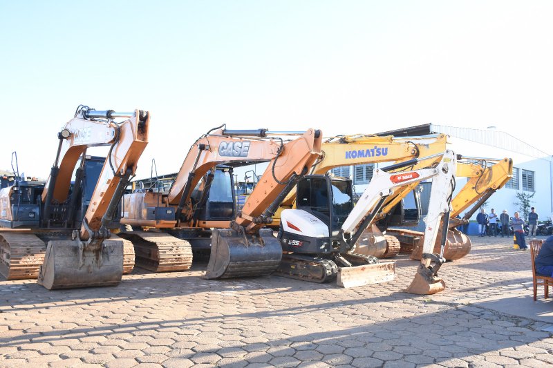 O Governo Municipal apresentou, nesta segunda-feira (13), o novo maquinário da Secretaria de Obras, ampliando a estrutura disponível para os serviços de recuperação e manutenção das estradas rurais. Segundo o Prefeito Gustavo Brasileiro, ao todo, cerca de 40 equipamentos passam a integrar a frota, entre retroescavadeiras, pás carregadeiras e caminhões.